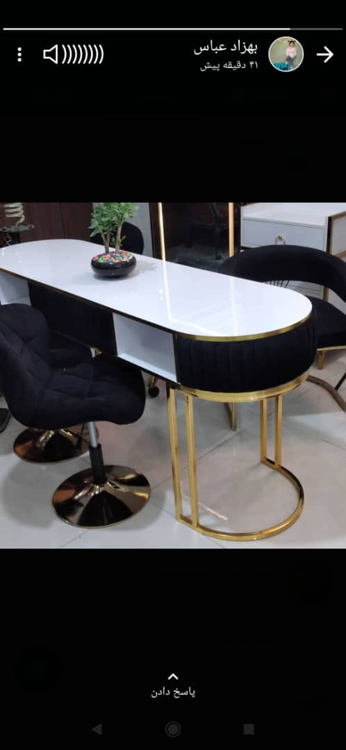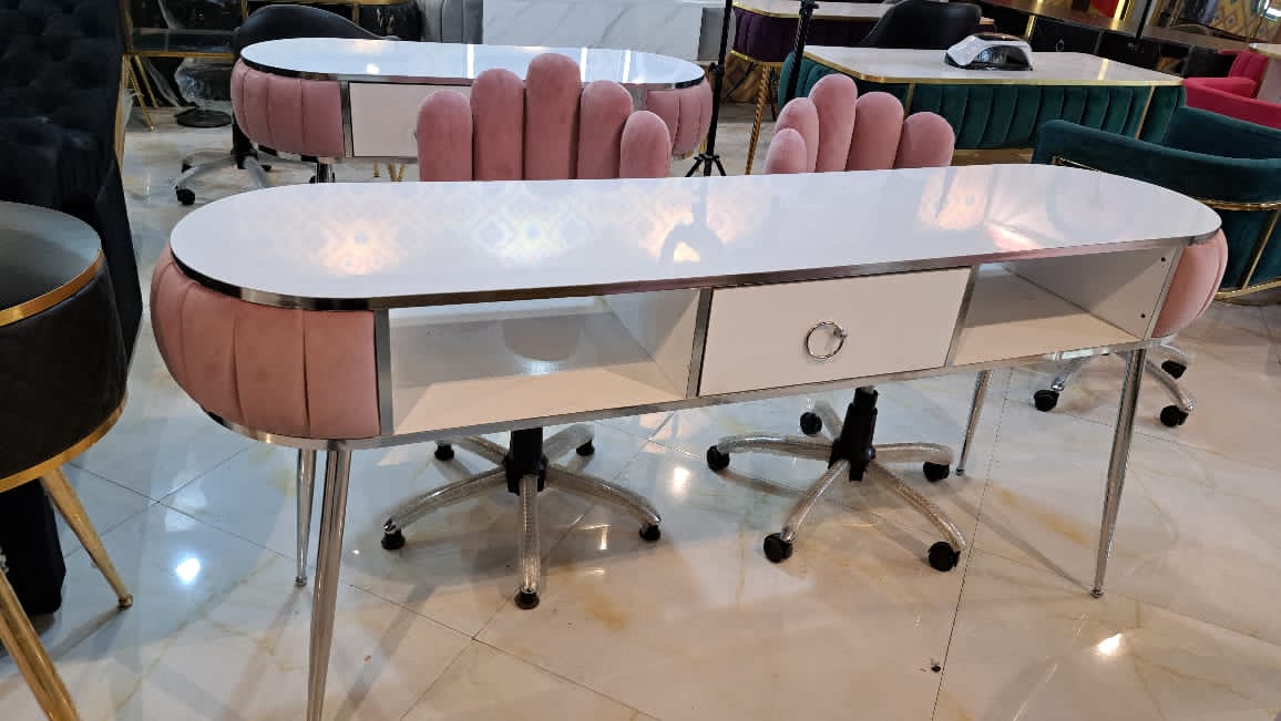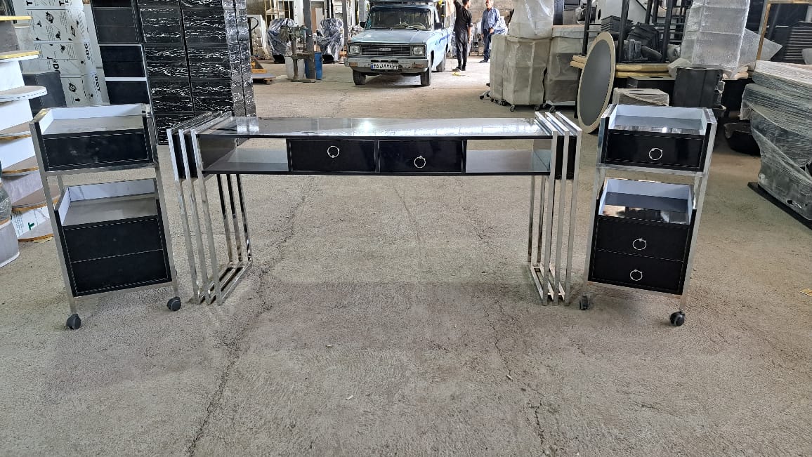 میزناخن دونفره های گلاس دارای رنگبندی چوب و فلز و پارچه بسیار شیک صفحه حالت زد خش و زد رنگ میباشد مدرن و مستحکم