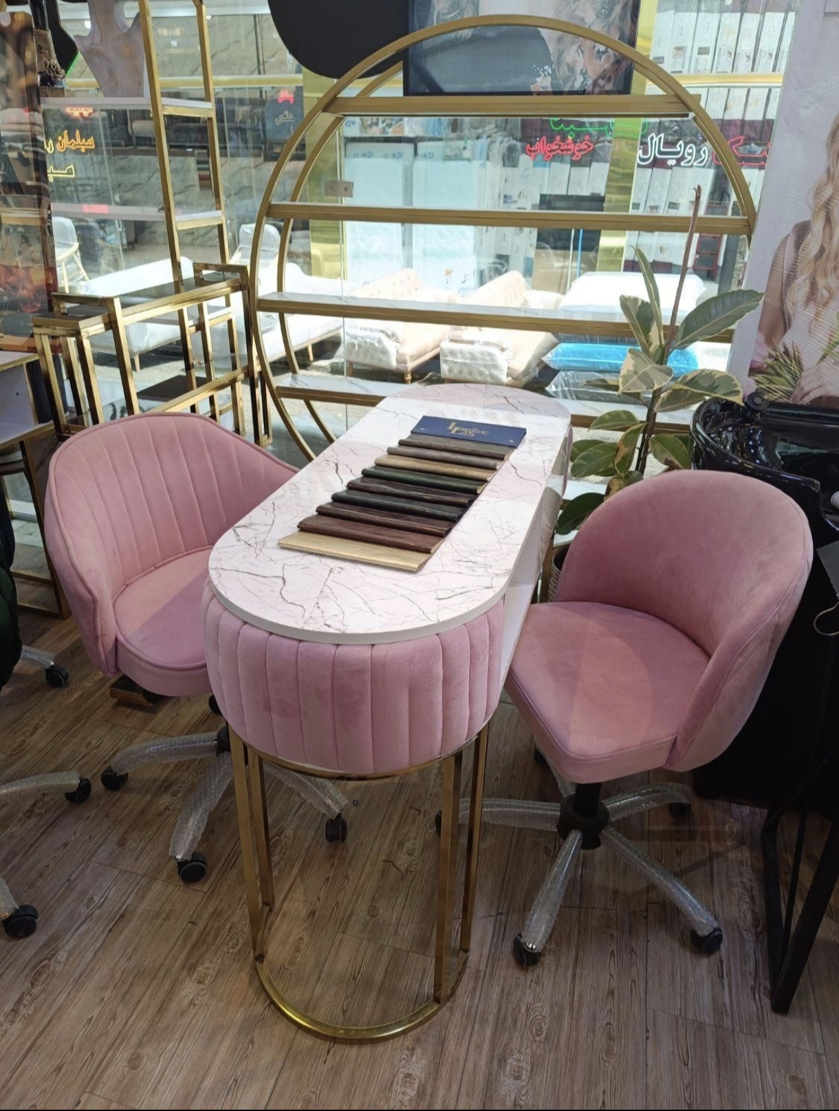 میزناخن ام دی آف تک نفره دارای کشو جا دار تمام بازشو دارای جای یو وی دارای رنگبندی چوب و فلز اندازه 120در45